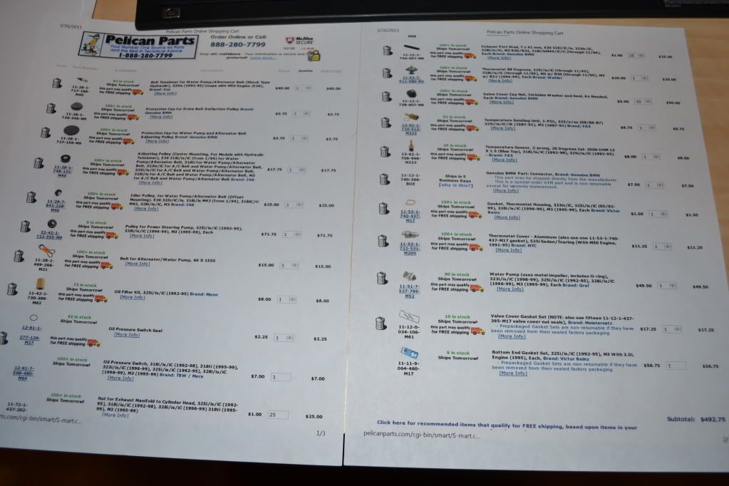 Here is all the parts I ordered yesterday, thank you PelicanParts! Spent $492.75 on just this one order.