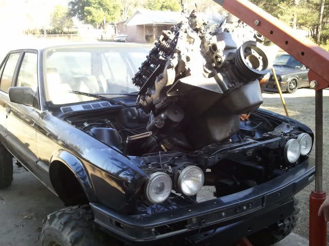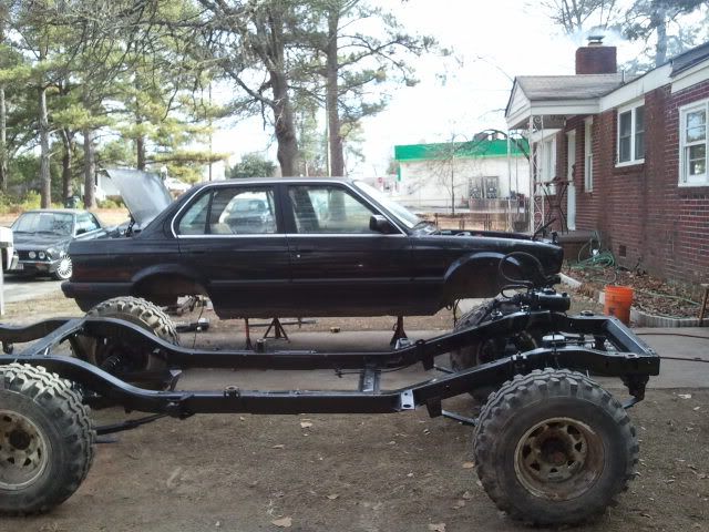 The problem would be getting the E30 to sit how i wanted it to. I sawed and grinded for 2 days trying to get the frame rails to accept each other. Removing bumps and mounting provisions that were not longer needed.