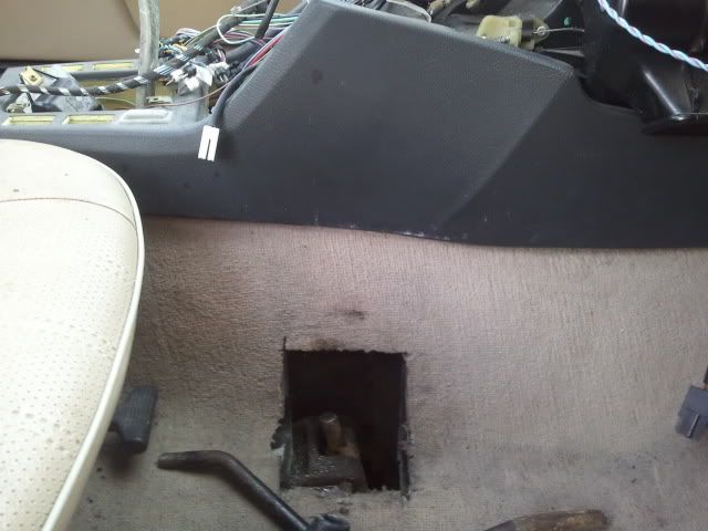 After install i felt like i was missing something... Then i realized i needed a hole for the transfercase shifter! I did the best i could with a grinder. I made the hole the same size as the E30 shift boot, Save for the obvious bend.