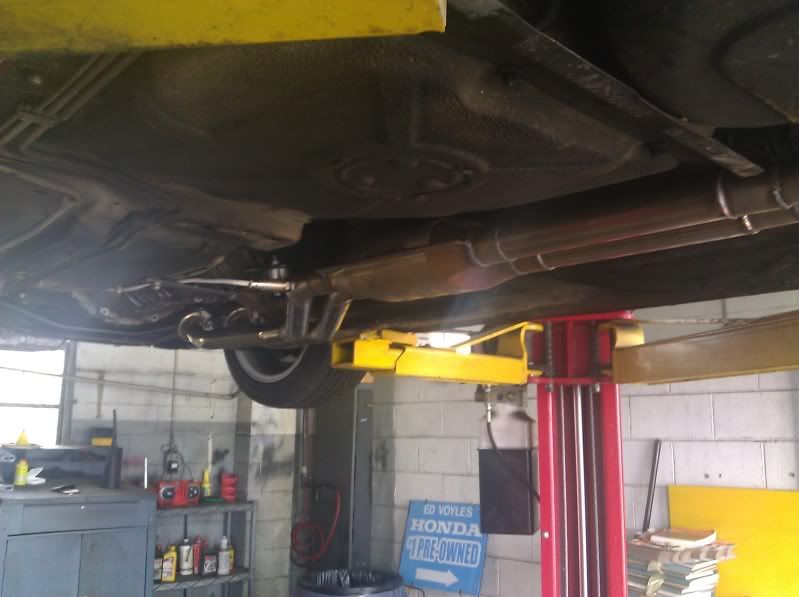 True dual set up with a dual inlet/outlet Cat. The cat has an open chamber inside that helps balance the everything out. Car sounds great with minimal rasp at certain RPM's