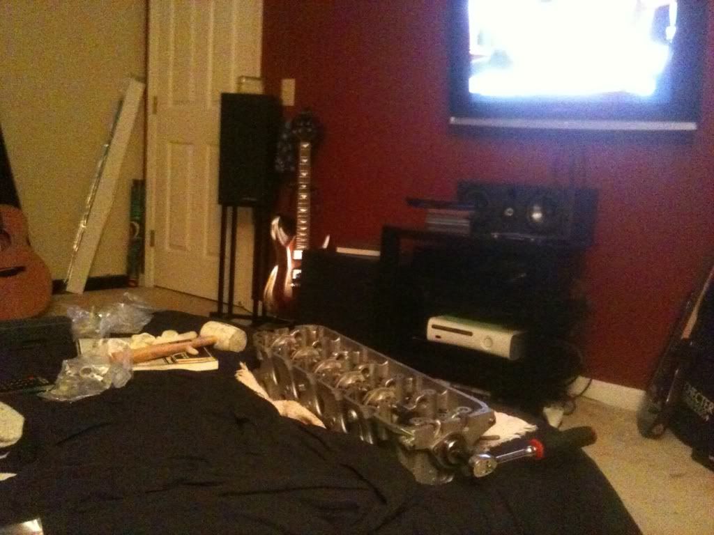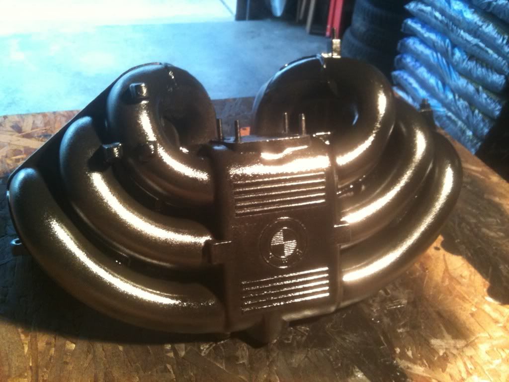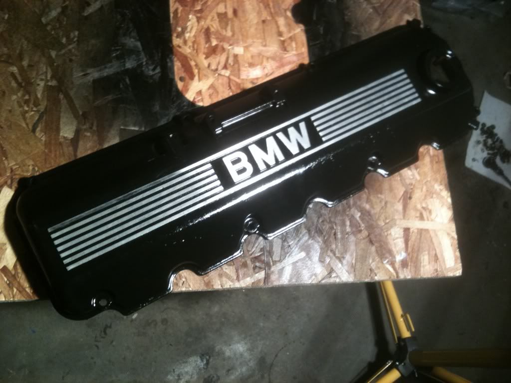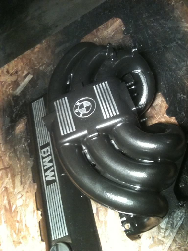 Not much of an update but I managed to do a little. Main thing I concentrated on was cleaning the short block for reassembly.... which sucked.... so much that i didnt even want to take pictures of THAT progress. In other news, I recieved my head, intake manifold, and valvecover back from Head Solutions. Everything turned out superb. When I returned, I began repainting the valve cover and painting the manifold....