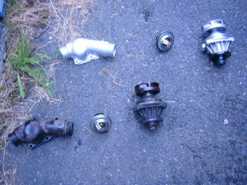 Yay! M20 80 degree thermostat installed behind an aluminum t stat housing and metal impeller water pump. That along with the mishimoto rad should alleviate the temperature creep I had been experiencing.