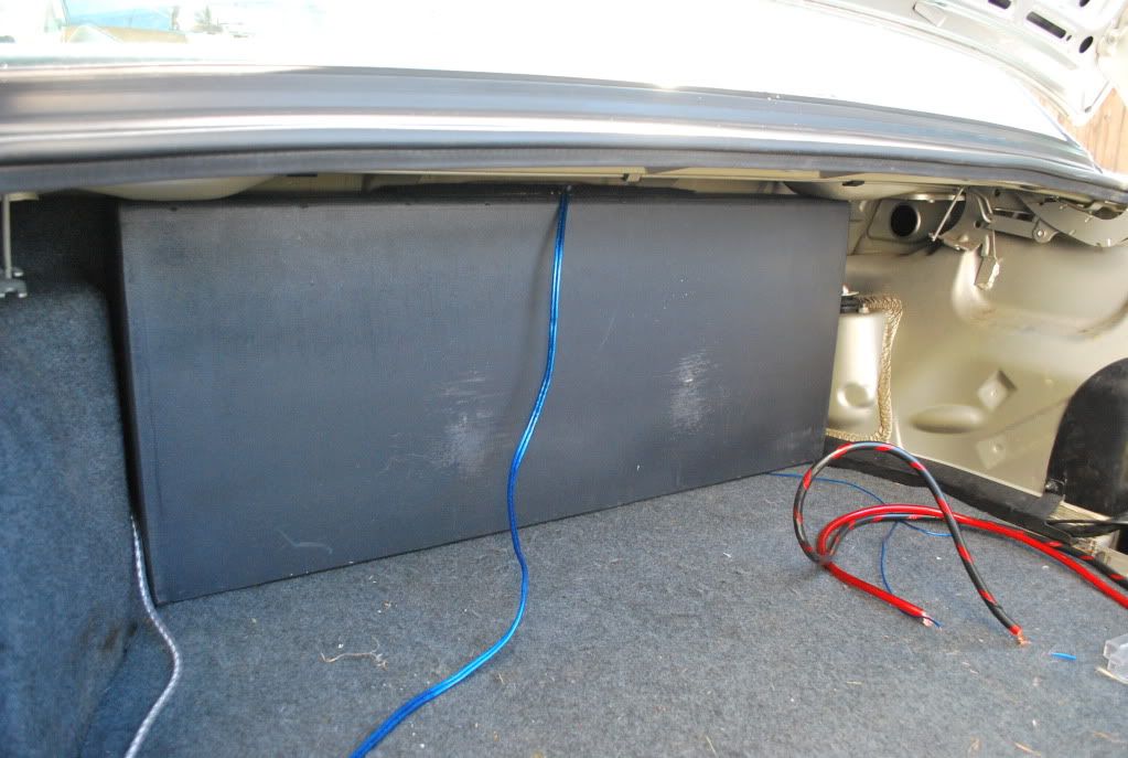 spent a few hours at a German Audio Specialties and got most of the trunk finished up. next is to change out the carpet and panels for black as well as mount a plexi window and a few fans to cover the amp rack. im quite happy with how it turned out.