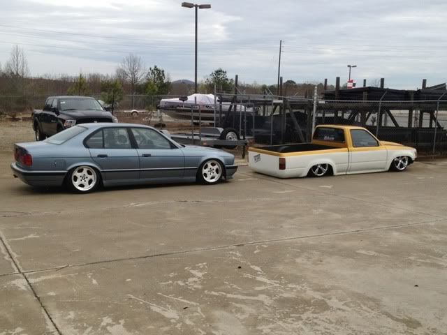 Had to move it out of the shop in order to clean up today, along with my friends truck. My car looks like a 4x4 next to his: