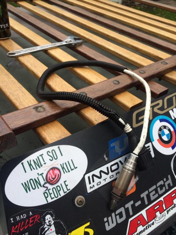 After rushing to refresh the M30 for Gfest '13 I neglected things to just get to the event, this year has just been going over everything and redoing last minute rushed work. Bought a rebuilt Bosch 140amp alternator and got a new Bosch 02 sensor to resolve the rich running issue. Had to add about 10" to make it from the header bung to the drivers side harness plug. Soldered the splices and heat shrinked the connections, then added a ribbed plastic tubing to keep the bare wires safe from vibrations.