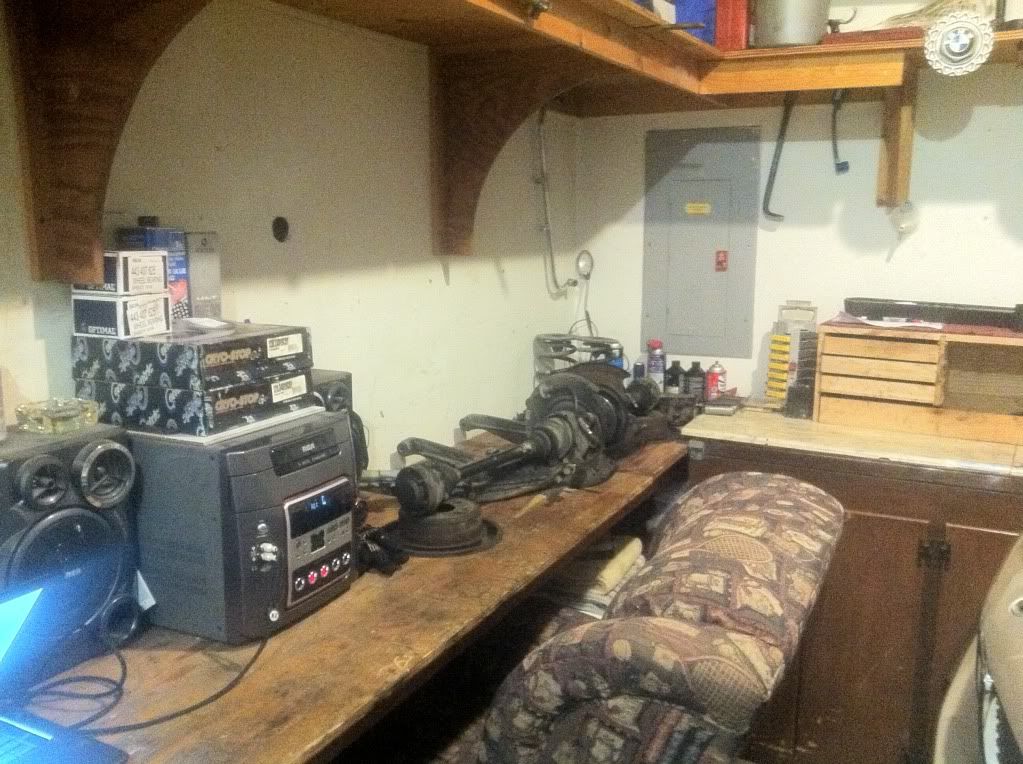 After cleaning the garage and putting everything on the shelf i have, and organized. I couldn't get the 30mm nut off so I'm doing that tomorrow at a buddies house, and then the rear end should go together.