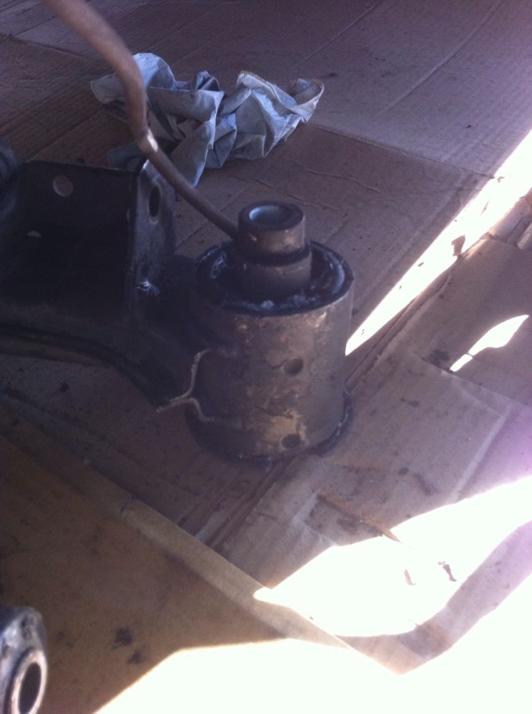 This is all I have, from taking it off. My hands were covered in grease putting it in so I have no pics. Just imagine one bushing most of the way in and another ever so slightly shoved into the subframe. If only we had a press...