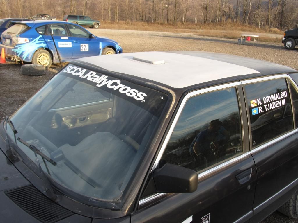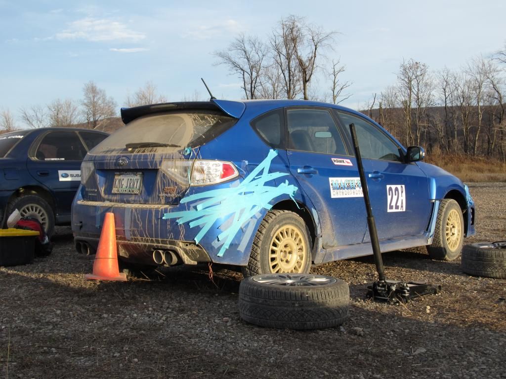 Here's a pic of Jeremy's STi, aka the cone killer. And bumper killer. This was the first event where he didn't rip it off at some point. I think some sort of bet was involved.
