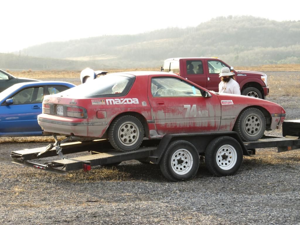 Here's a pic of the previously mentioned FC RX7 driven by Shawn and Katie. It's pretty much stock, but damn does it seem to effortlessly connect corners and drift like it's a job. It's a complete POS (it requires bump start to start and can't hold an idle without a foot on the gas), but it's totally awesome and embodies rally-x spirit.