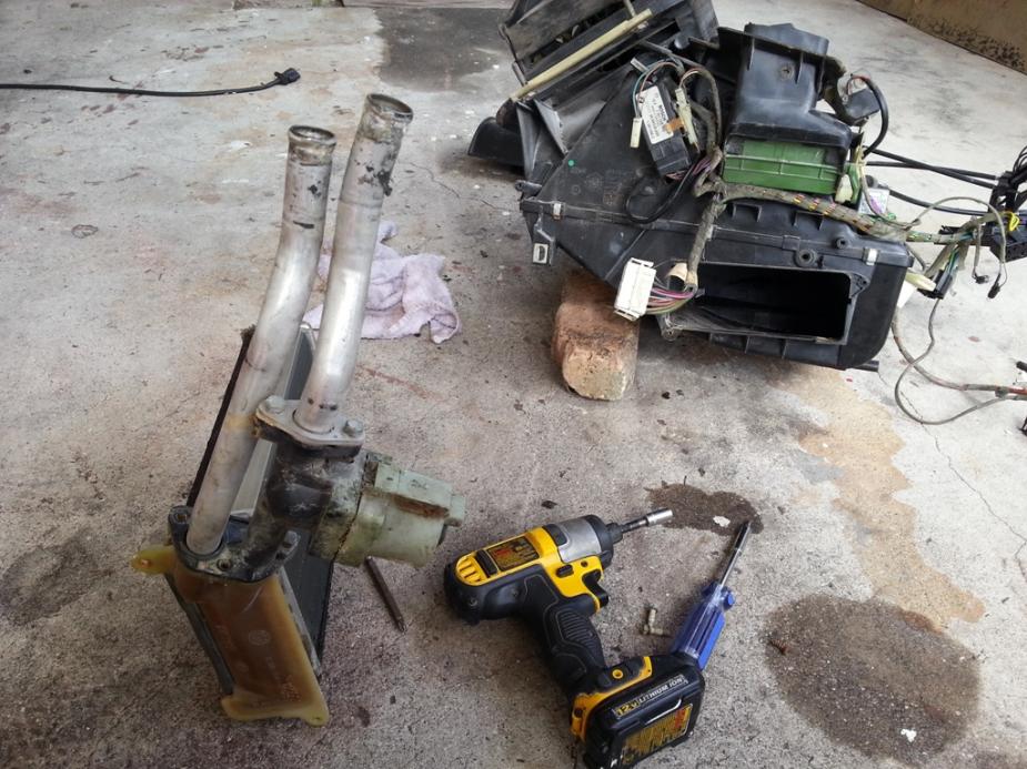 had the dash out and back in with the carpet nicely installed underneath the heating core in one day. practiced removing the dash and heating core carefully on the 4 door at the yard so I knew what I was doing when it came time to do it on the old girl