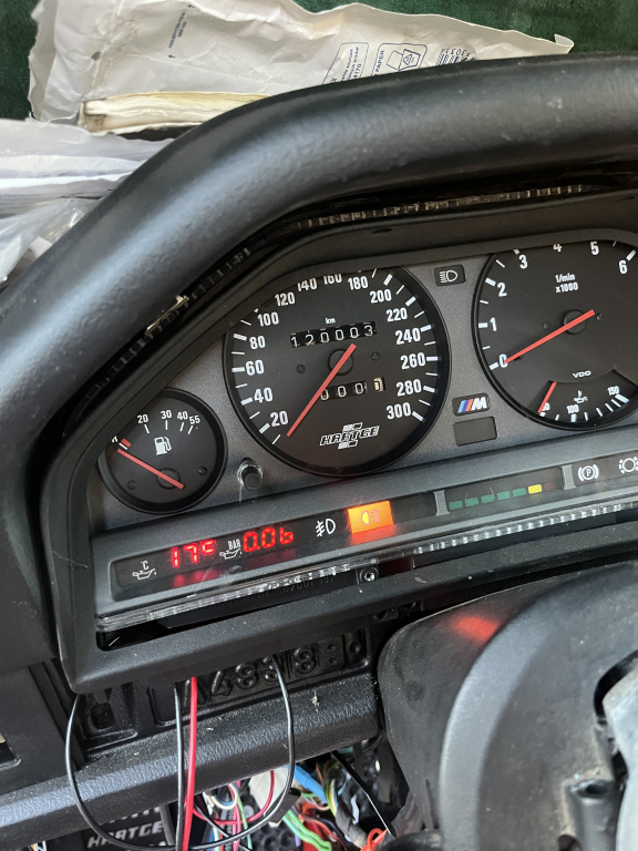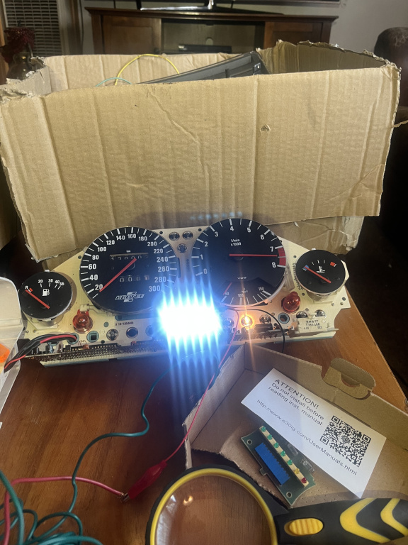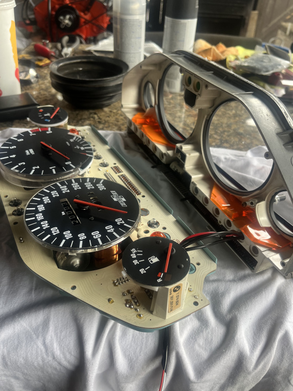 I went back to to e30 Cluster site and order the 6 cylinder 8k chip $28 bucks. It fit perfect like the stock e30 cluster chip. The costume cluster was cheep to buy $450.