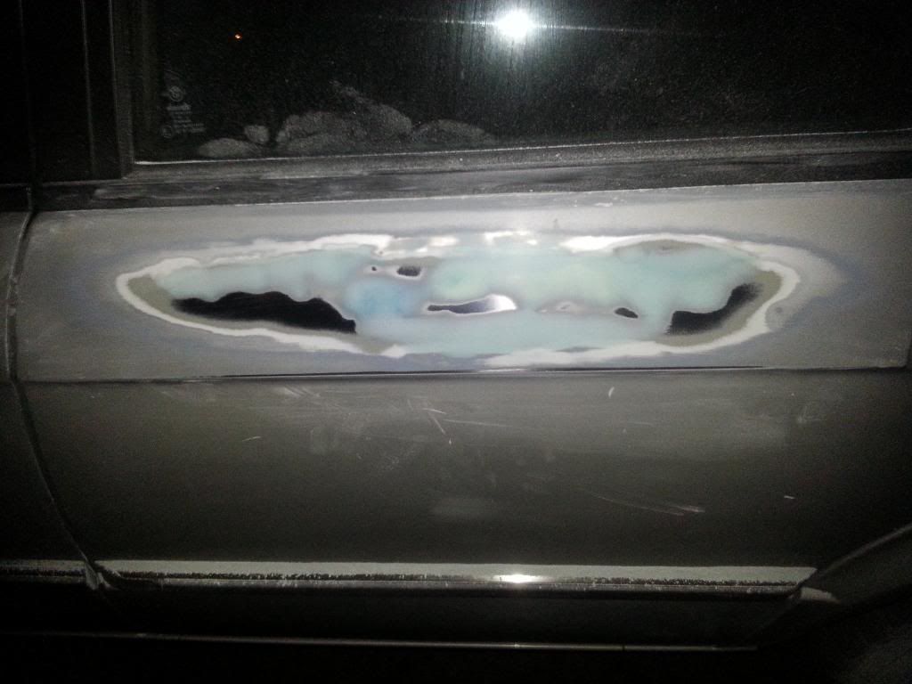 So i decided that i have the engine im waiting on an engine stand ......lets start on the body work. So i got some good quality body filler and went to work. Here is what i ended at for the day.