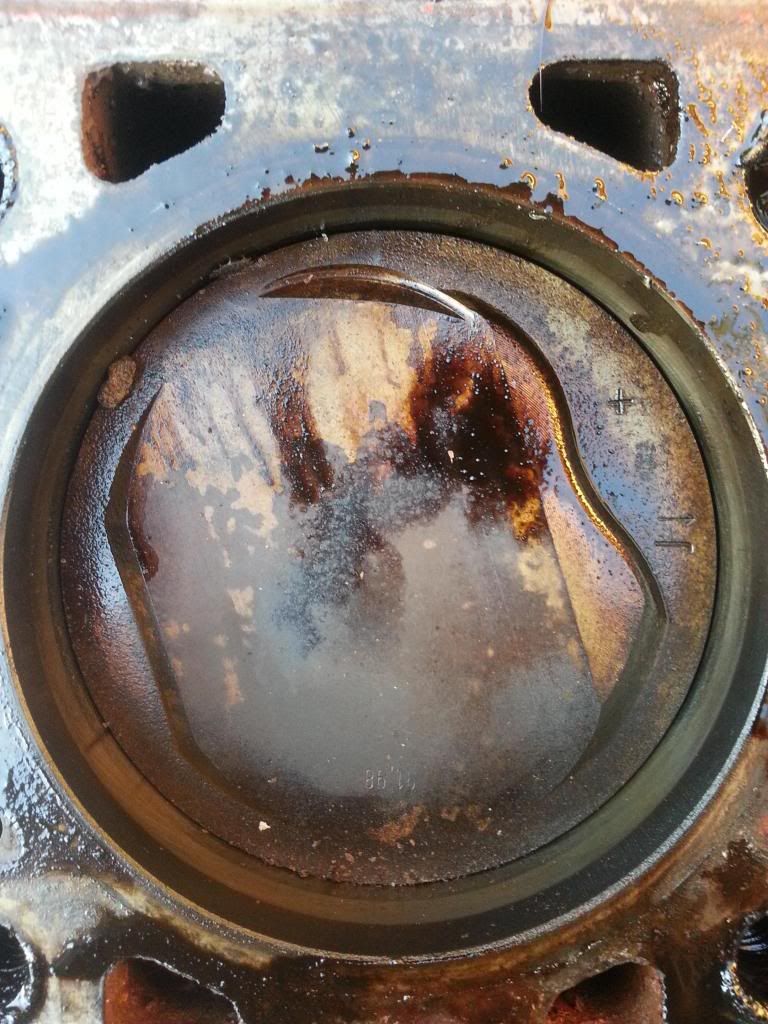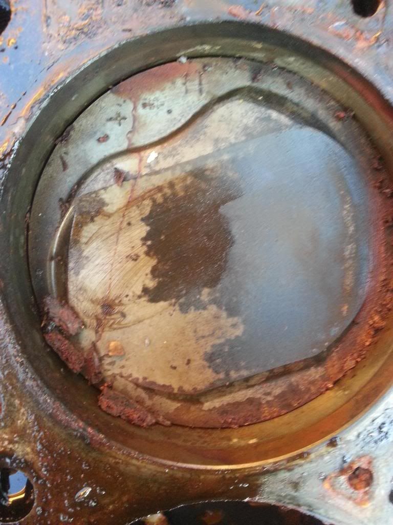 it looks cracked but its not its a rust stain. Im going to have them cleaned and inspected at my local machine shop and see if i can reuse the current pistons i doubt it though.