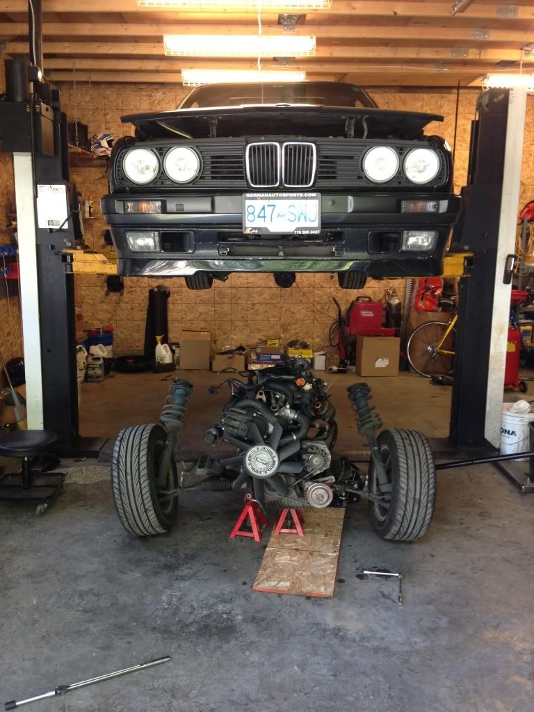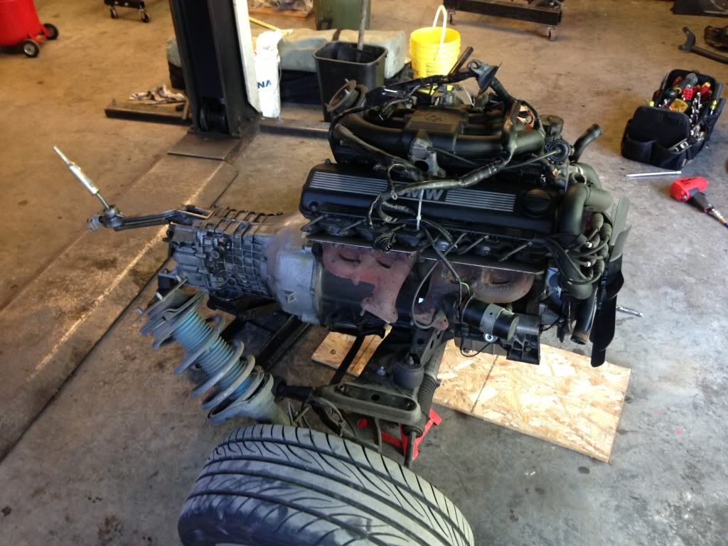 That brings us up to date. I woke up one morning with an urge to do another engine replacement, so I decided to follow the dream I've had since day one with my old 318is and install a 24v powerplant. Snagged an S52 for a reasonable price and started.
