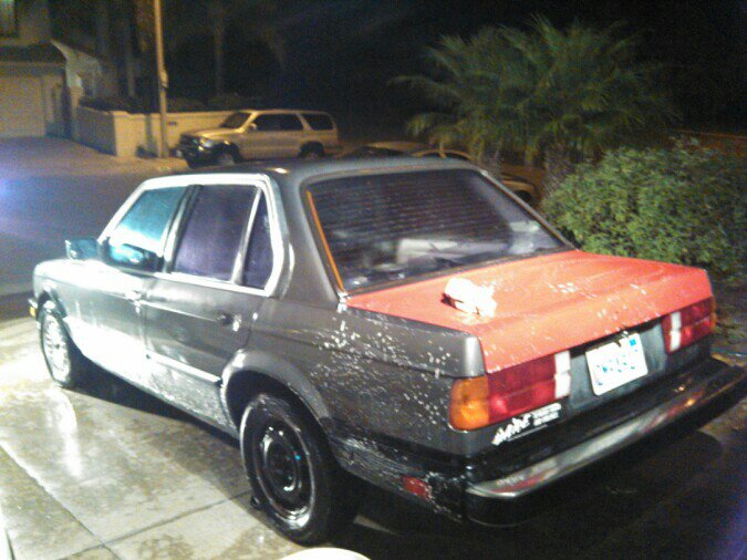 As many of you know my Vert was r3vd so here's her replacement... a 1985 325e Sedan. She needs a bit of TLC, but expect new paint, a 5speed swap, and if I have the funds, going to convert her to a stroker (2.7i). All she needs now is a wiring harness and general maintenance and she'll be road worthy. The best thing is I picked her up for free from a friend. :D
