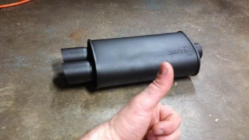 mounted fenders, drilled bumper shocks, got a new muffler. pepboys speed shop had one on clearance, Vibrant 1148 2.5" dual oulet, for $59 out the door.