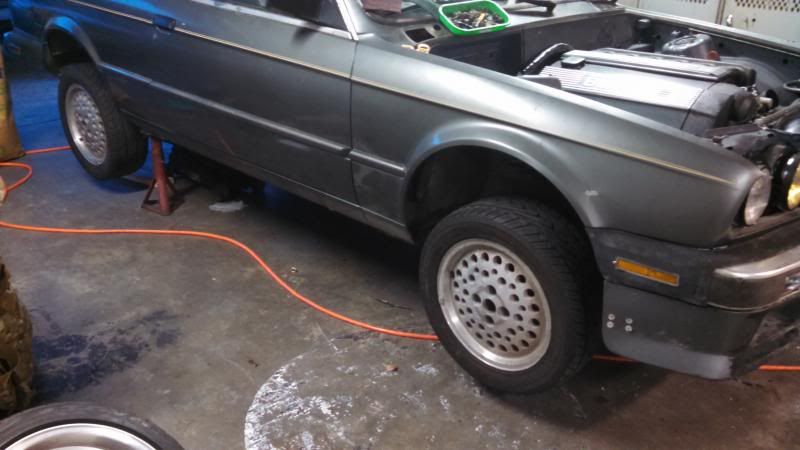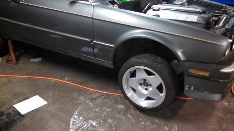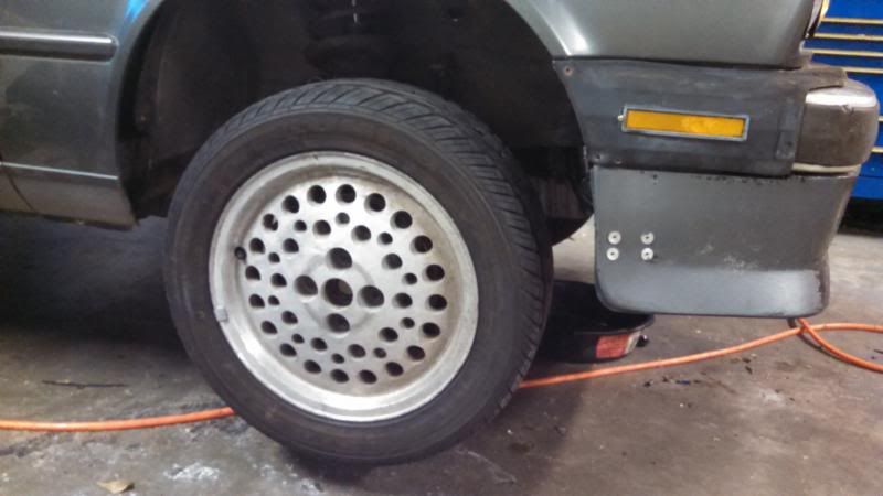 got some temporary wheels on there. i had these thing for 5 years sitting outside waiting for another 4x100 car to put these on. I love these things. too bad they are heavy as fuck and only 6" wide.