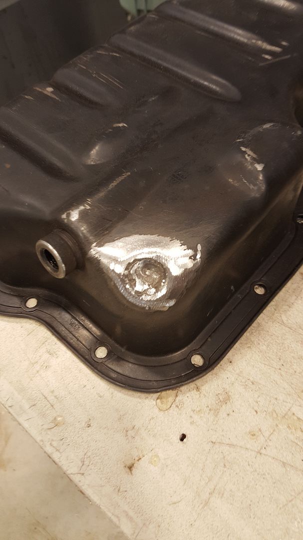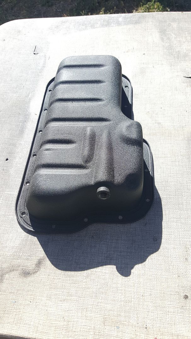 Welded up the hole punched im the pan by the junkyard and hit it with some black wrinkle coat.