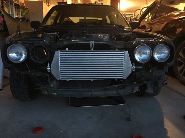 Retro fitted some led headlights, lot of cutting to the buckets but they are in they are on and they look and work fantastic. started messing with getting the velocity stack in place as well. She's starting to look mean! Getting closer and closer