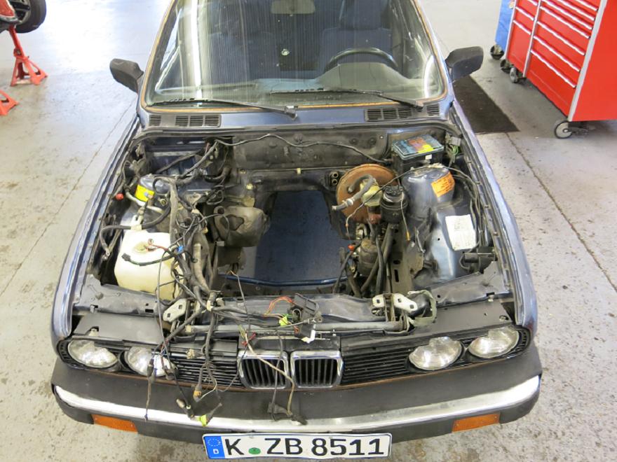 My car is a 1984 325e. When I bought it, it didn't run, the paint was awful, and the dash was badly cracked but it was rust free. I found out that the car was not running because it had no spark. Although it seemed like an easy fix, it wasn't. I found out that the reason my car didn't have spark was because the crank position sensor peg on the flywheel had sheared off from a broken throwout bearing. So I had to pull the transmisssion. Fortunately for me my dad has a friend with a machine shop who was able to build me up a new peg for my flywheel.