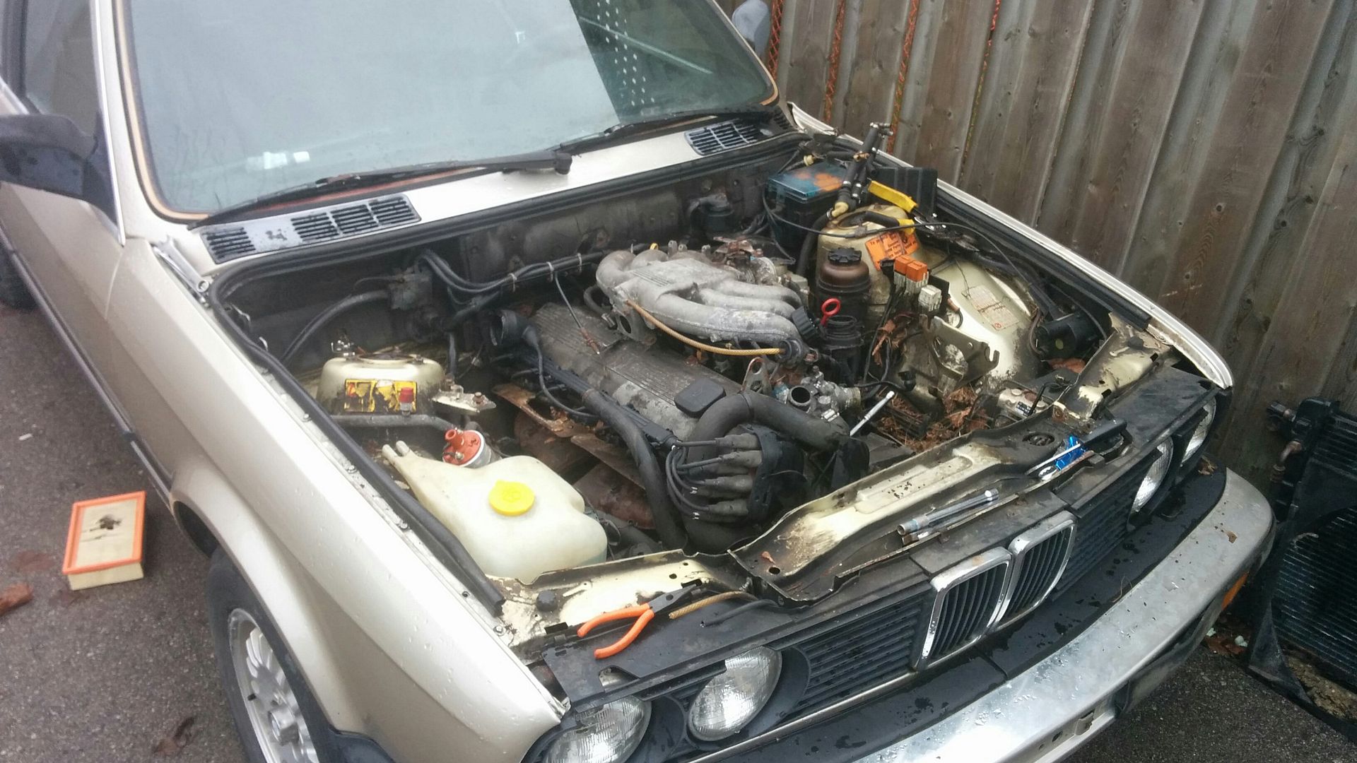 I knew absolutely nothing about E30's in general, and had no history on the car. It was missing the cluster, fuel tank, driveshaft, and a few other parts. The hood wouldnt open, but I didnt care. I was taking it.