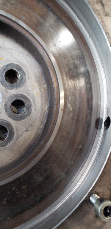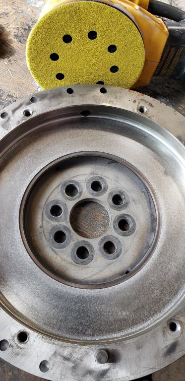 I did a hillbilly flywheel resurfacing. Came out good. This is a single mass flywheel from a 318is without an air conditioner. I learned this - air conditioned m42 cars got dual mass but non A/C cars got single mass. They're pretty rare here in North America because we normally got A/C but it's the other way around in Europe. Clutches aren't easy to find but I found a good kit for $120 eventually Valeo I think it was. The single mass m42 flywheel is very different than the m20 flywheel - it has a big rim around the outside and the clutch sits inside that rim..It's heavier too I think - but hey it bolted right up without mods. Only got these photos guys - sorry I should have been more diligent.
