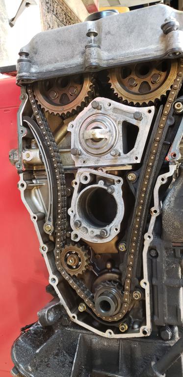 When I tore don my engine one of my chain ramps was cracked. It was the expensive one as well. Fortunately - I had been *given* a spare m42 which a local had run out of oil. That engine had a new-style chain ramp that was in excellent shape. Here is a photo of it still installed in the spare engine.I also used the water pump from the spare (it was excellent shape) and the inner timing case because the one that came on the engine I bought was badly corroded in the water pump area. Didn't get any photos guys - sorry about that.