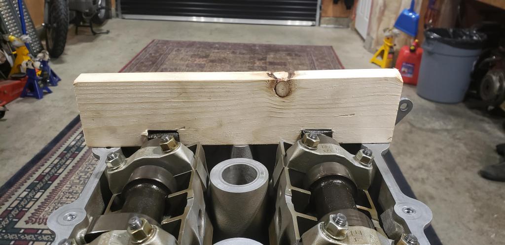 Reassembling the engine about a month ago now and I made a tool out of wood to help me time the cams. In the end the wood piece didn't hold the cams square enough so I finessed it bit by bit until the end pieces were dead level. Torques teh sprockets bolts to some ridiculously low setting. Instructions are on line - I won't go into it here unless someone wants me to.