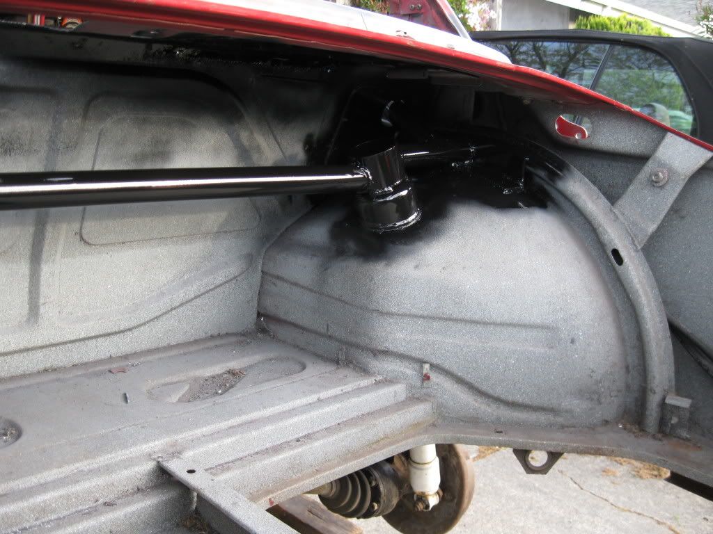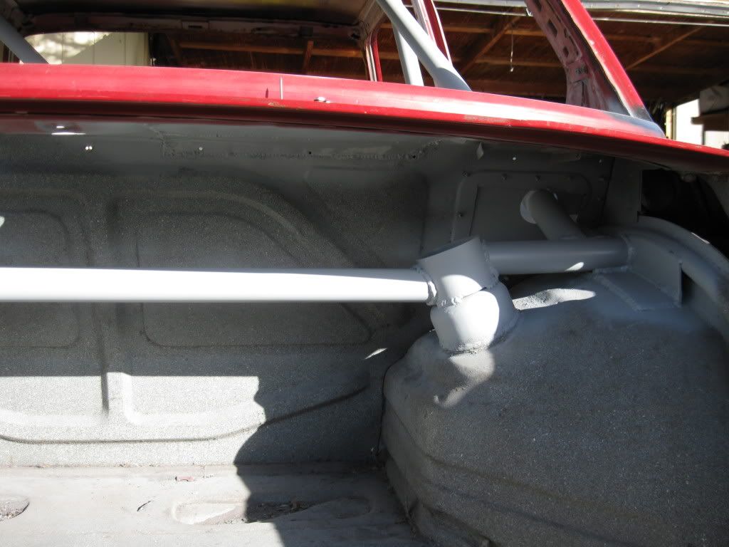 I got the bar primed and painted gloss black, and the parcel shelf cover undercoated on the bottom side. I just checked it, and its been a while since I sprayed it, and its still sloppy wet so I won't be able to cover the top side tonight.