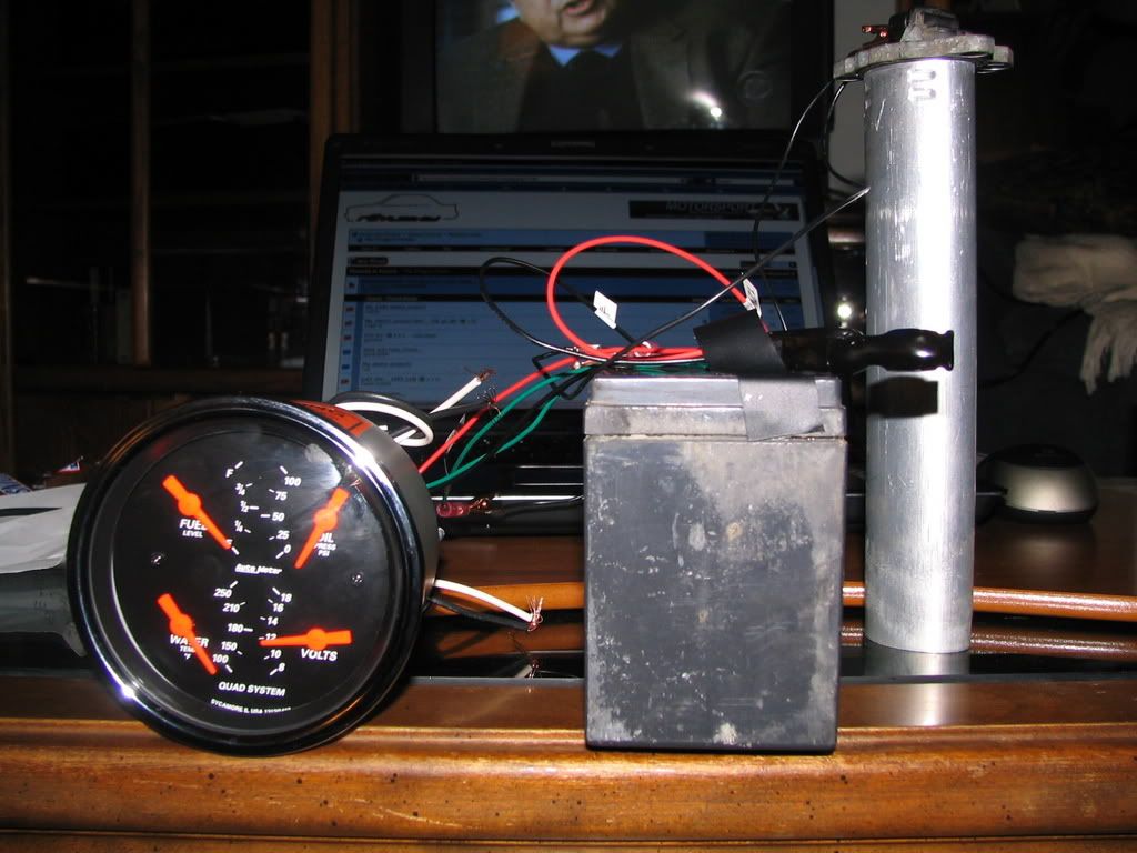Working picture of the gauge, I tried it about an hour ago and realized I put the thing together wrong. Somehow managed to put in a 3.9k resistor instead of 39ohm. Woops. Got that swapped out to what I tested it originally as and got this-