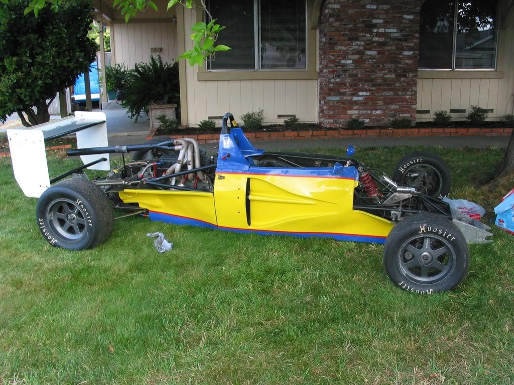 Here's at least one pic for now of it when we first got the car a while ago, its been a PITA to get running. First the sequential tranny overheated and one of the shafts and welded itself to a fork sticking it in 1st gear. Unfortunately its one of the only transmission of its kind in the world, so no parts. It was built by VanDiemen to get homologated by SCCA, but basically got rejected and there were only a couple of them. When it was finally back together it got one lap till the friction plate of the clutch was stripped out via the input shaft to the tranny. Just got that back together. Powered by a ford cosworth engine.