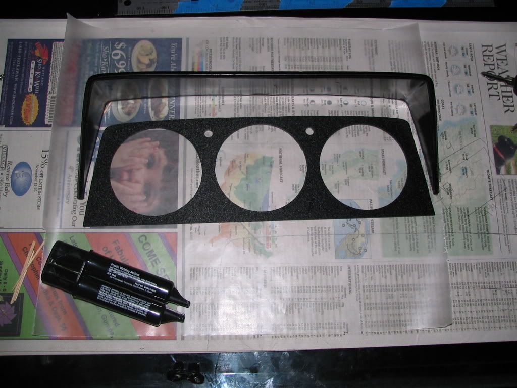 Yesterday I got a 2x2' piece of 1/8" thick ABS plastic with some texture on one side good to be a gauge face. I found my scrap gauge cluster housing and removed everything but the three sided hood and transfered it to a small piece of the ABS. It's close, some gaps but that will fill with the epoxy. I'm going to mount it to the stock locations, so I'll have to measure the mounting studs on the good gauge set I have for now.