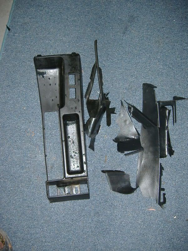 On another Note, I thought I needed to replace the back half of the center console, come to find out it was covered in vinyl as well...here is the picture of it apart...I will recover this as well, but I'm on a search to find non-backed vinyl for the interior now: