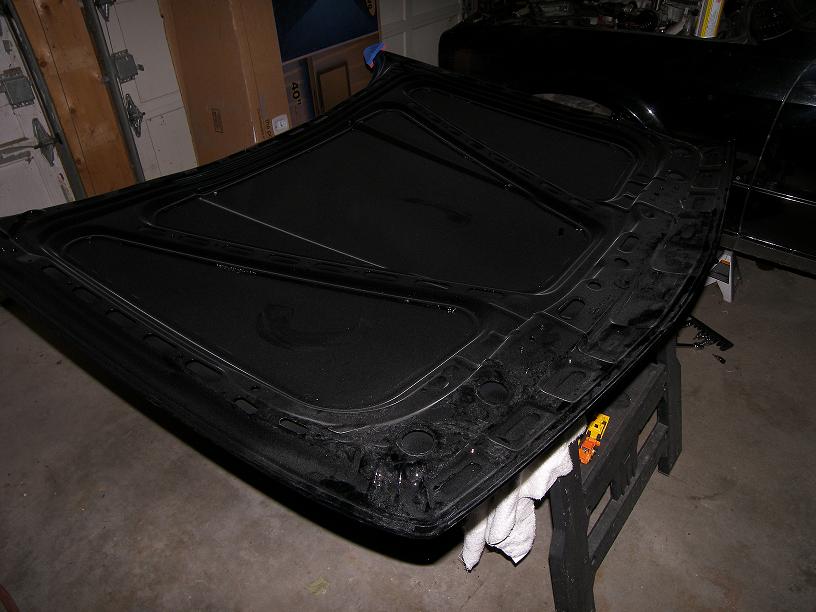 Got my new hood today - I had it shipped to the shop, where they painted the underside. I got this from BAV too, and went OEM. I just cannot deal with aftermarket panels. It is dusty as shit right now from being in the shop. I need to pick up some epoxy to put the BMP insulation on it now. The top will be painted when the car is painted.'89 "is" = M technic II build mode.