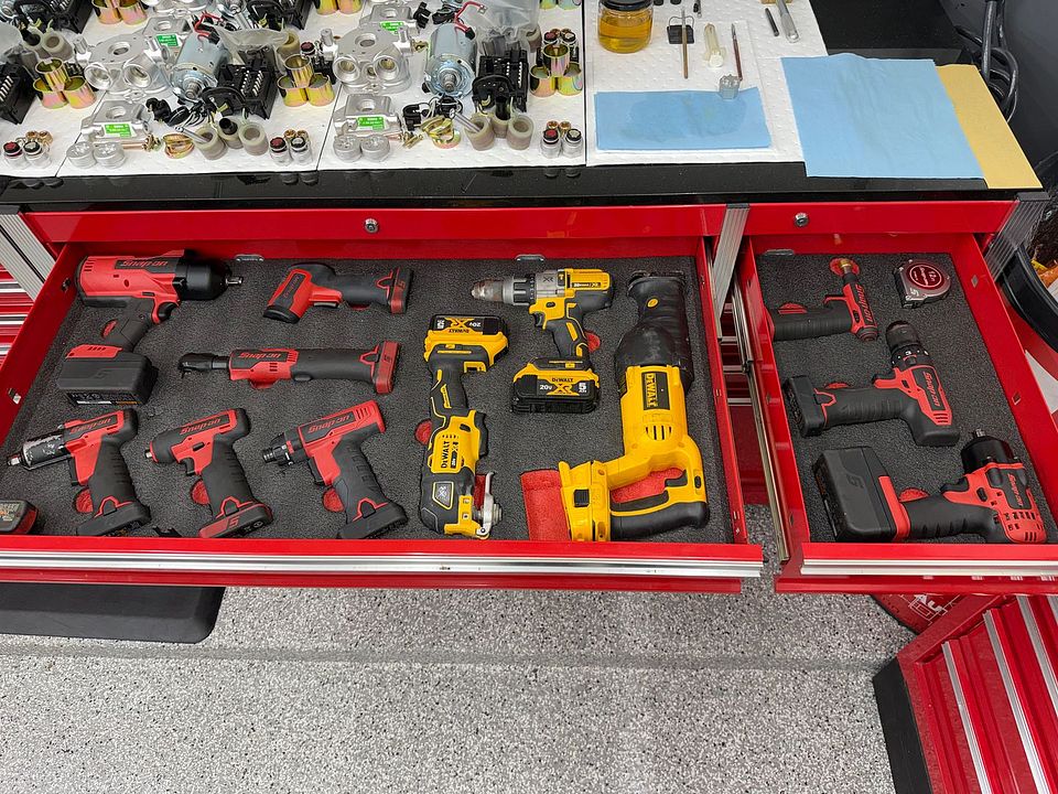 Ah... this thread is relevant to my non E30 interests lol. My workshop is always a work in progress, I really need to finish painting the upper cabinets but I lack the spare time to allocate to their completion. The OCD is strong around these parts.... A few of my favorite and oh so afflicted drawers, along with the general workspace below. I cannot recommend foam enough for the organizational prowess and ability to close drawers without concern items will migrate. No it is NOT the most efficient use of space, but it sure looks nice AF.