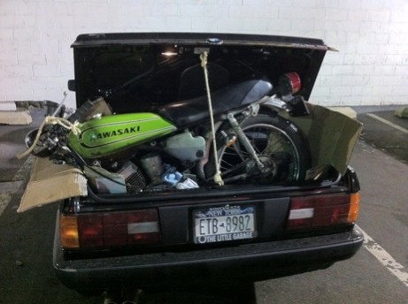 Theres a lot of body filler on this. It was done by the previous owner before he gave up on the project (thank God, dude murdered this bike). Seat is new and not attached obviously. Just showing how the rear looks.