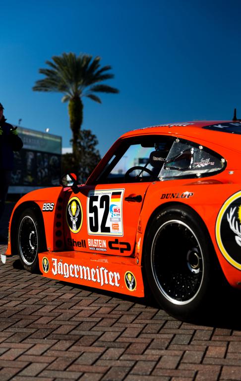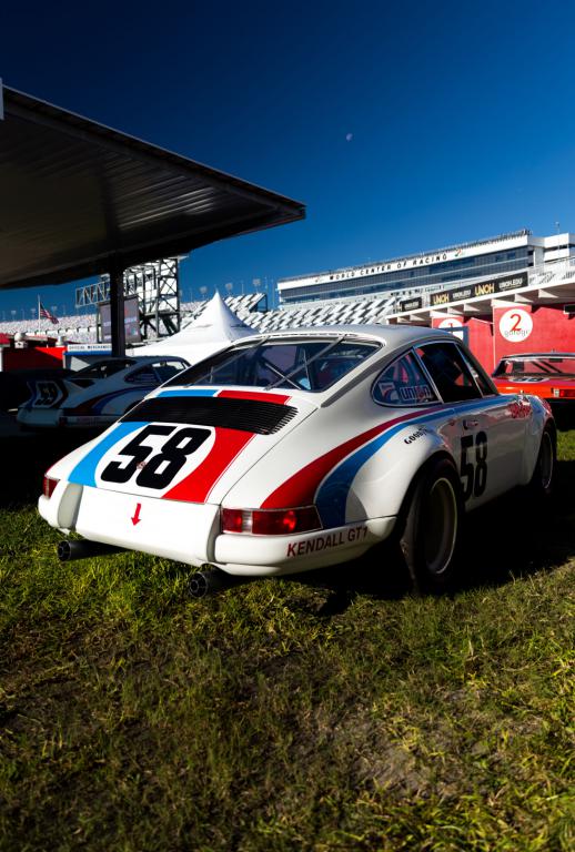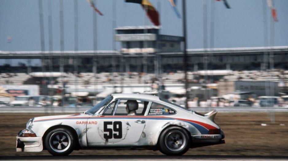 The factory 911s are carrying the old Brumos Porsche colors.