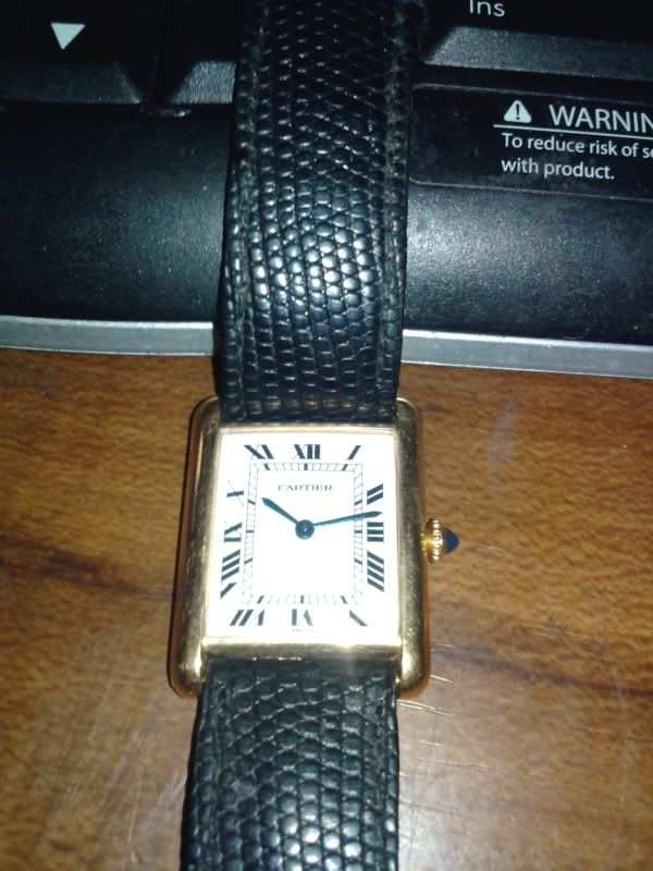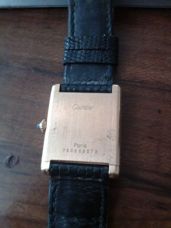 on the back it says "Cartier 18k-swiss 780868372" with a black alligator like strap/wristband. i've tried looking online, not pulling any results anywhere, anyone here know anything about it? the face is a rectangular shape with 3 roman numerals on each side for the hours...