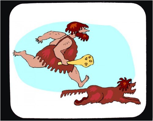 Here is a picture of a caveman and a dog in a footrace. It's historical significance cannot be measured, but you can imagine as if they're racing in the wild.