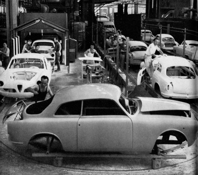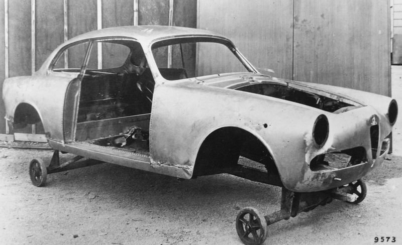 So you can find pics of stamped steel, spot-welded chassis coming out. But those may be the Giulietta sedan made at the Alfa factory at Portello.