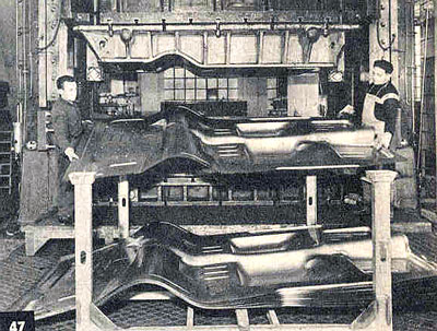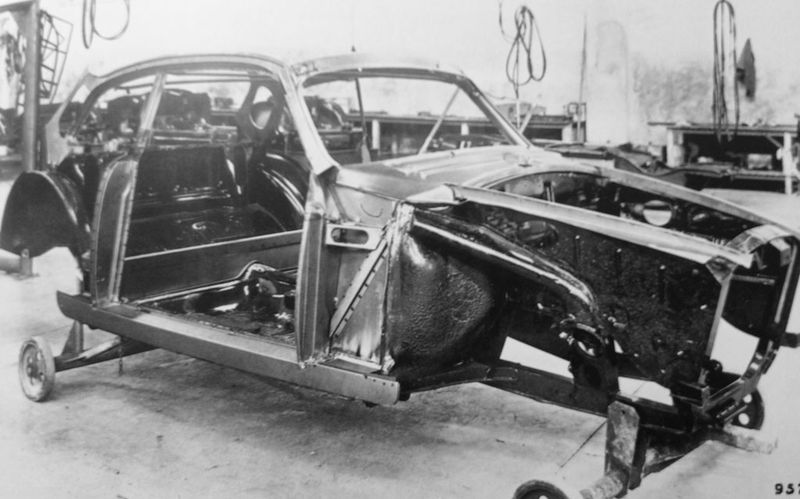 I got wondering about the factory pressed vs hand-made panels. The factory was reviving and trying to get out of the post-war mess they were in. They built some more big cars on the pre-war chassis, but those days were over. The 1900 iron block sedan was popular, but old fashioned. They had to get modern and develop a new production line with smaller, monocoque cars in volume to survive.
