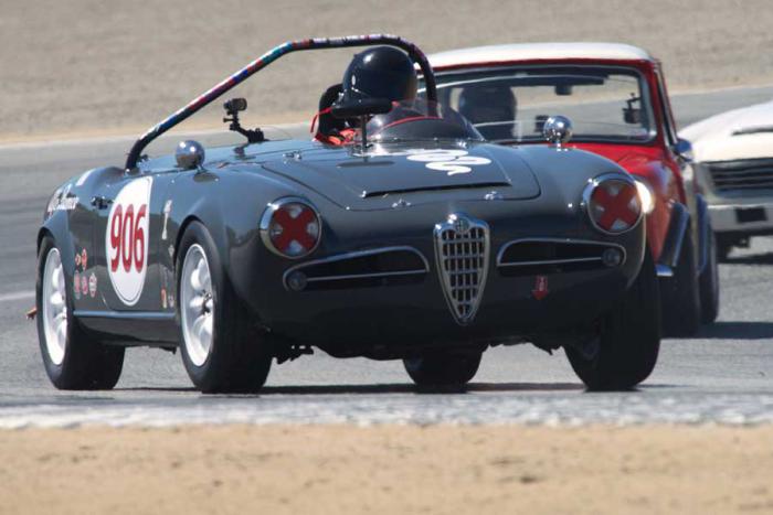 That Spider is a local car to me. It's fast. Peter Inshaw owns and drives it. The 3rd car back is a Datsun Roadster, I think driven by my friend Tim at Laguna Seca a few years ago.I was just looking at that mid-engined car again. I just realized that's a backwards DeDion rear suspension on there. Crazy. The lower wishbone-shaped pieces coming to a point at the back are the frame rails. The punched arms are the DeDion "trailing" arms, which usually swing rearwards. The silver tube going across in front of the oil tank keeps the hubs parallel. There's got to be a lateral link somewhere in there, and the springs, and the dif, and the half shafts.