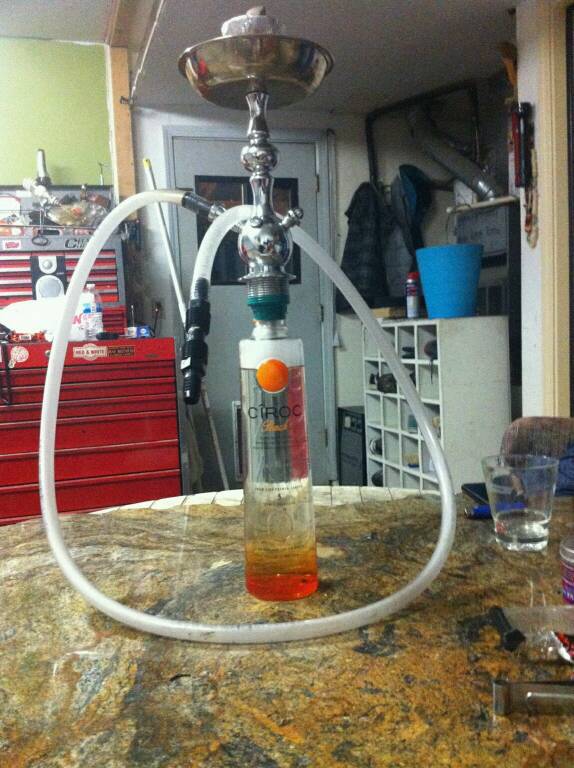 Couldn't wait for a new base. That's my makeshift hose and a cîroc bottle. It is more sturdy than my old base and hits a lot easier.
