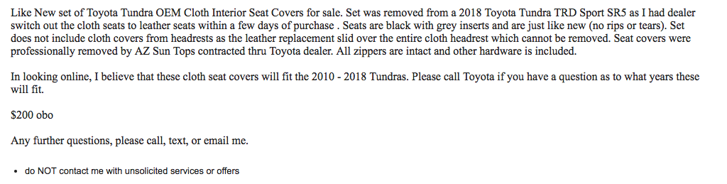 I texted the guy, asked if they were for a CrewMax & they are! we agreed on 150 & I drove the 60-mile round trip & got them.