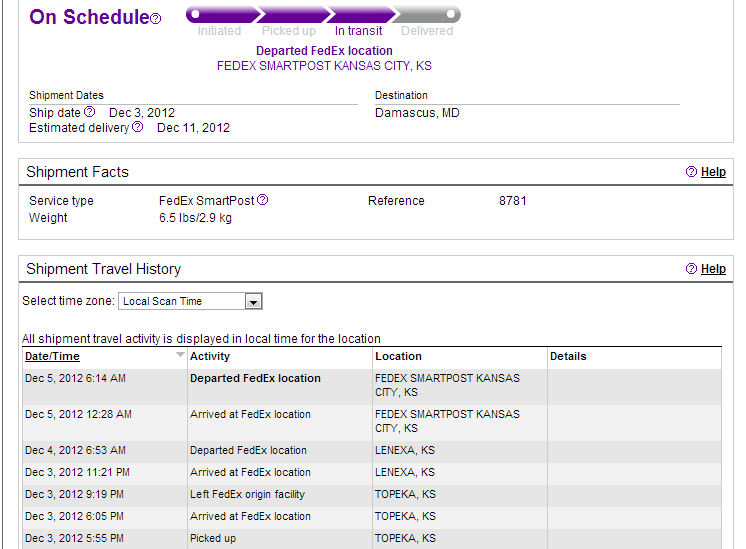 We finally got the package I posted the screen shot to. Had to drive out there and get it ourselves.