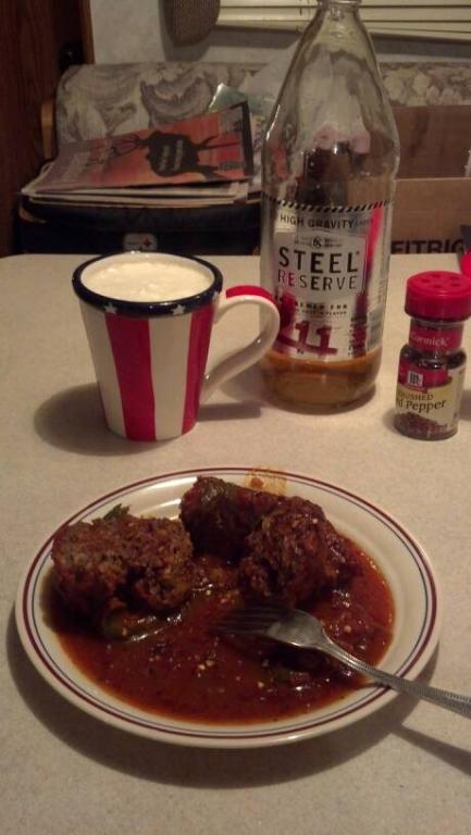 I'm at the camp again tonight. Just me and my dog. its snowing outside so no campfire. However I'm drinking beer out of a coffee cup n eatin stuffed peppers. Life is good.