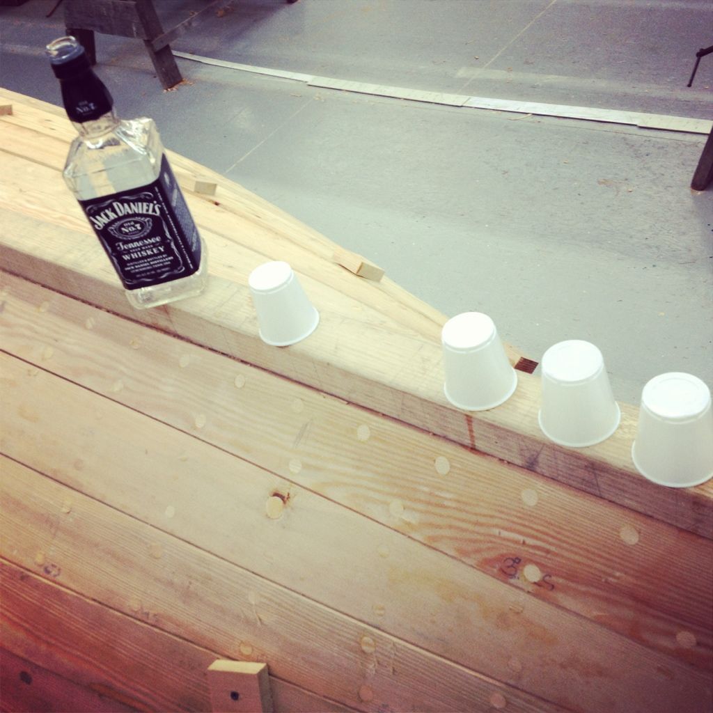 And last but definitely not least, the whiskey plank. The last plank on any boat is always the whiskey plank and is marked with a small celebration, a toast, and a shot of whiskey for everyone.