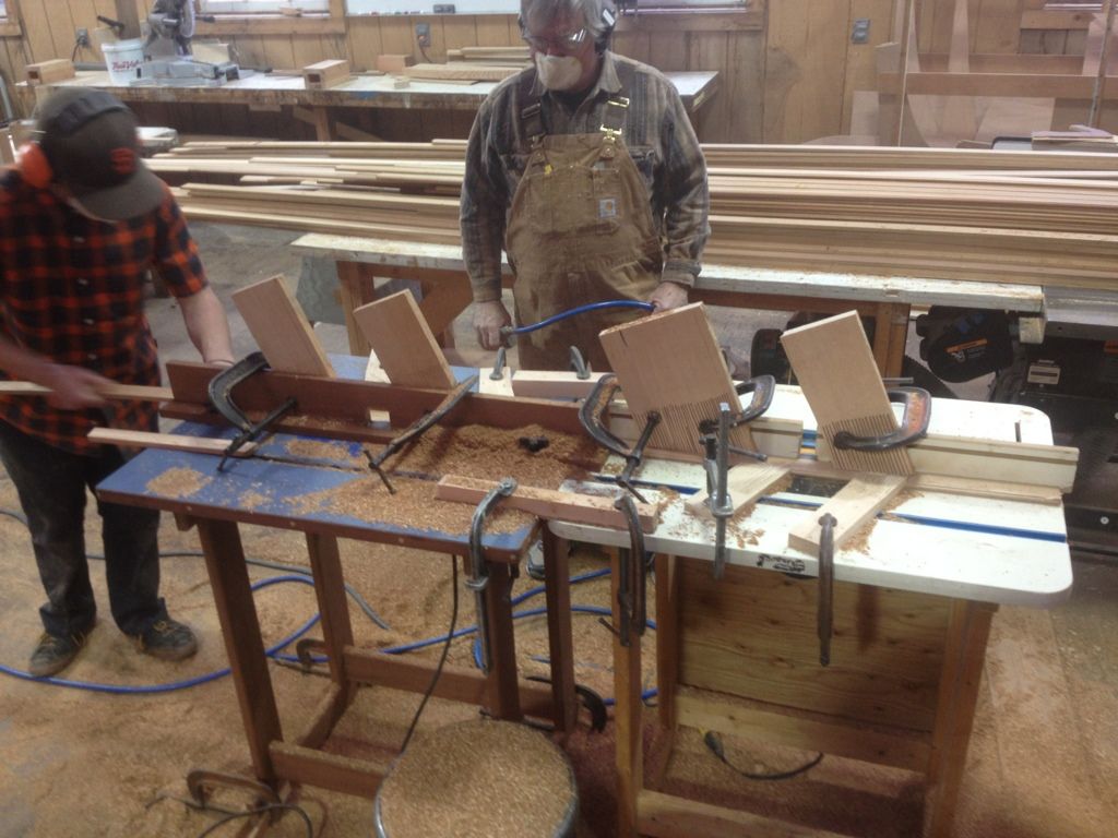 There ghetto rigged dual router table to cut a bead and groove at the same time ;)