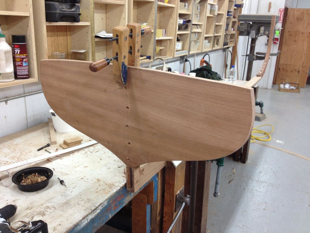 Now for the lapstrake boat we just started. On lapstrake boats the planks, or strakes in this case, over lap each other instead of butting up against each other. This will be our first lapstrake boat. I helped make the molds with my buddy Griffin and also made the transom out of some biscuit joined Sapele.