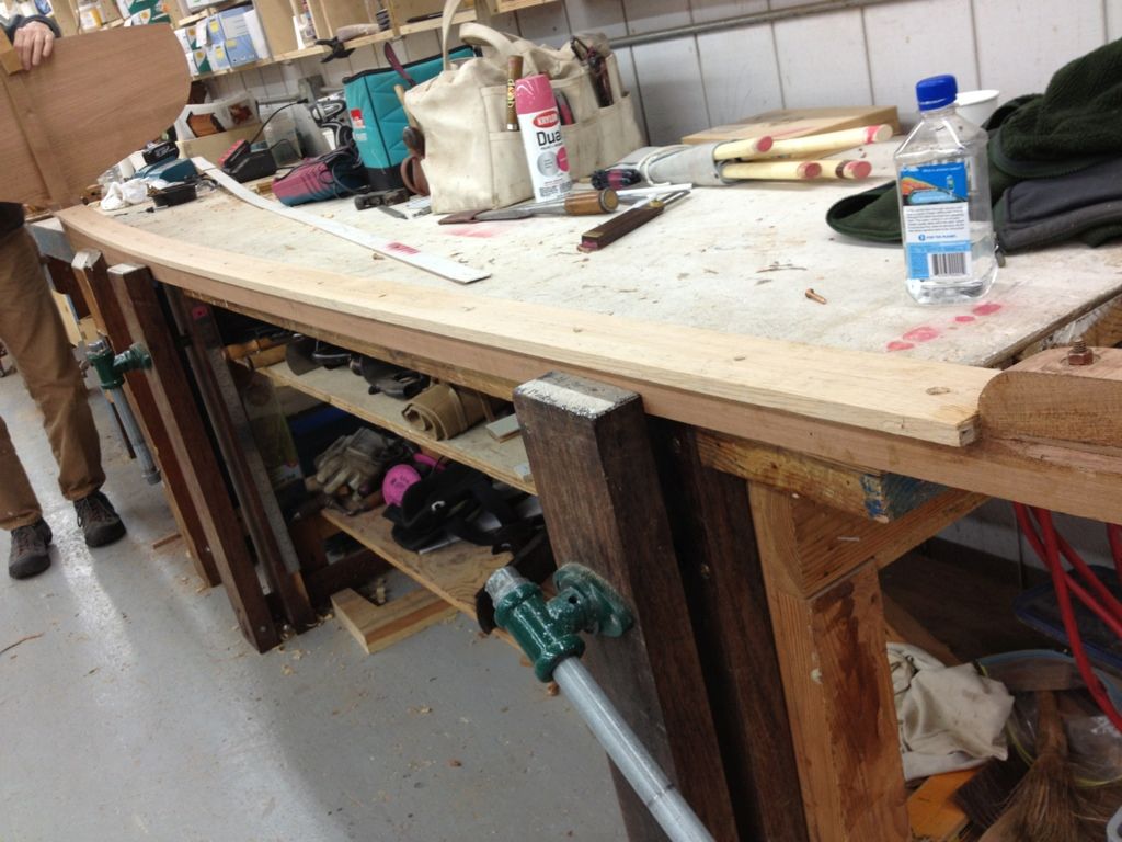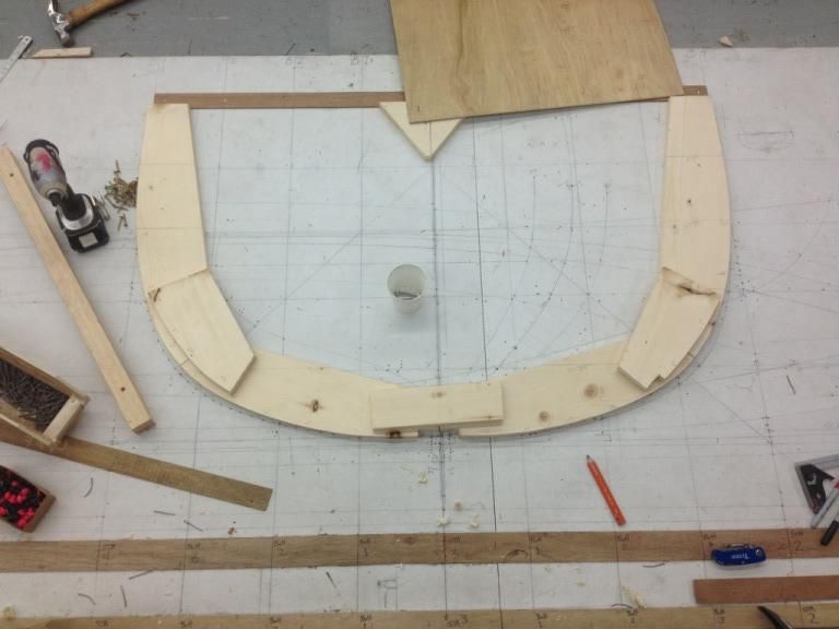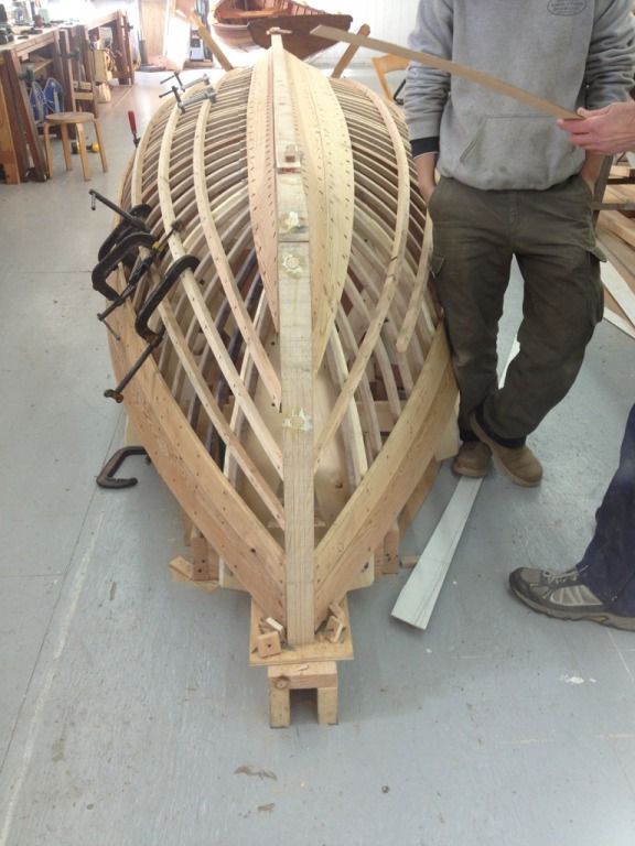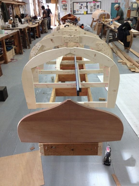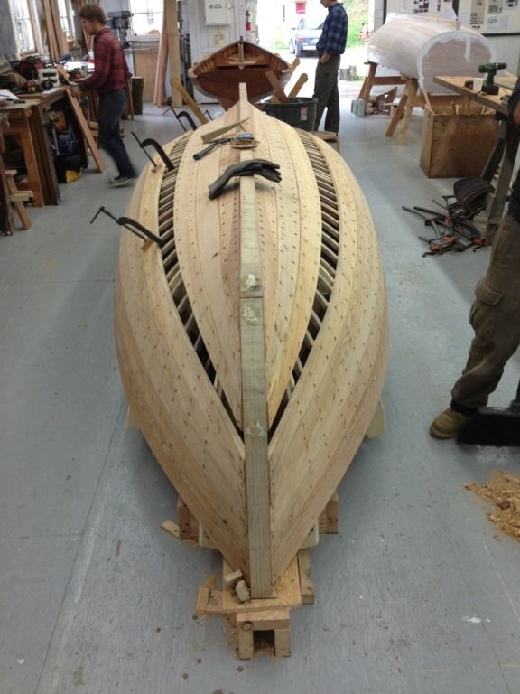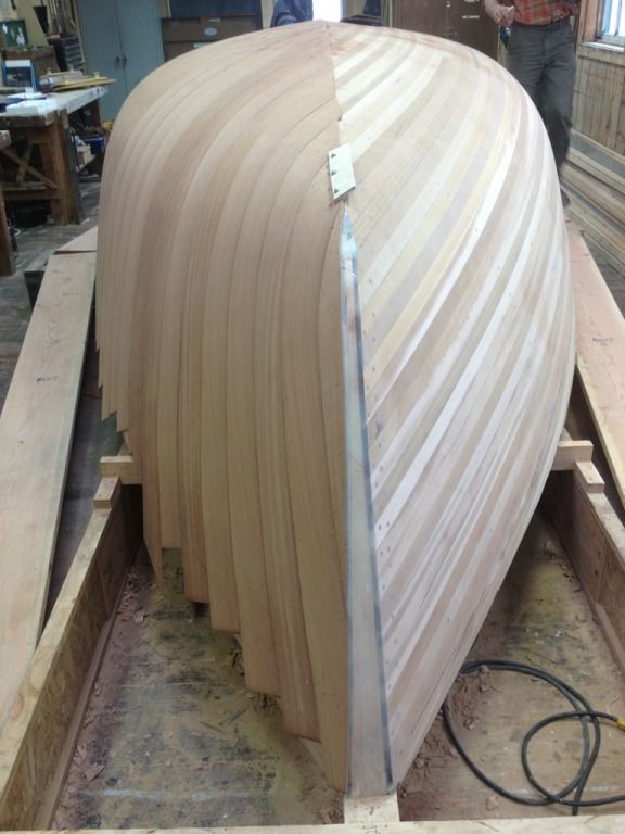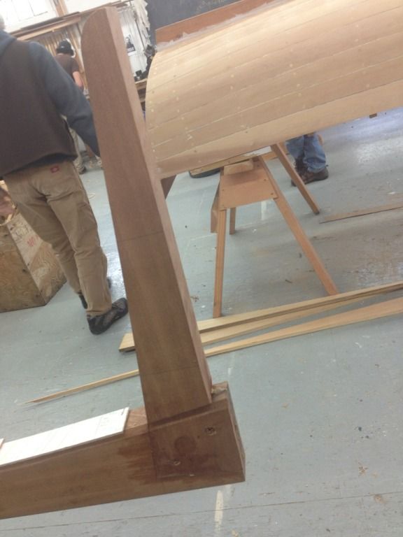 Ok and finely for some random shit. The guys next door are working on this contemporary craft. Its a sentinel class 24" day sailor, thats about all I know. The keel, frames and transom are all laminated. The hull is strip planked with bead and groove, then two layers of thin laminate are vacuum bagged on, and then finely it gets glassed.